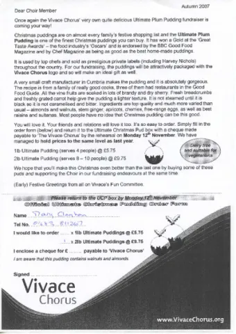 payable to ‘The Vivace Chorus’ by the rehearsal on Monday 12" November. We have