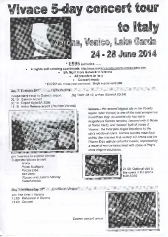 VIVACE CHORUS - Italian Tour — programme as at 14/01/2014