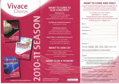 I:, a) a cheque for £20 made payable to Vivace Chorus