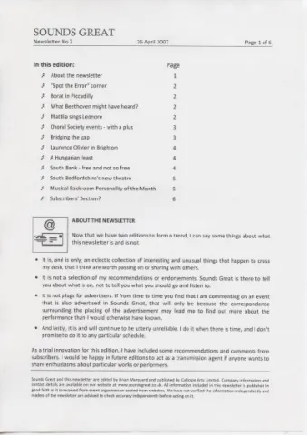 contact details are available on our website at www.soundsgreat.co.uk. All information included in this newsletter is published in