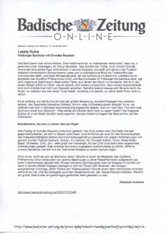 Freiburger Bachchor mit Dvoraks Requiem