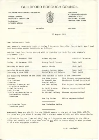 the 1988/89 season's Brochure giving details of the Choir's concerts.