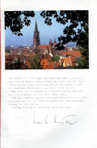 Congratulations on GPC's 50th Anniversary from Freiburg Bachchor
