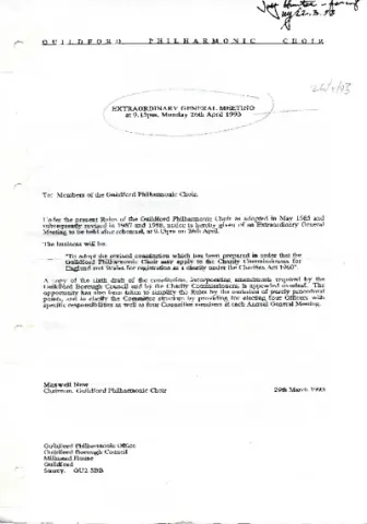 Under the present Rules of the Guildford Philharmonic Choir as adopted in May 1985 and
