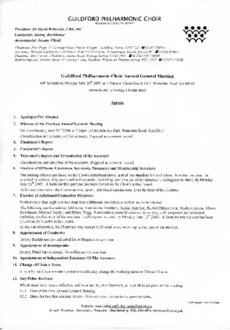 Guildford Philharmonic Choir Annual General Meeting