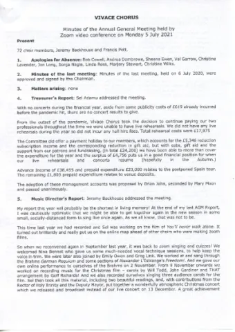 Music Director’s Report: Jeremy Backhouse addressed the meeting.